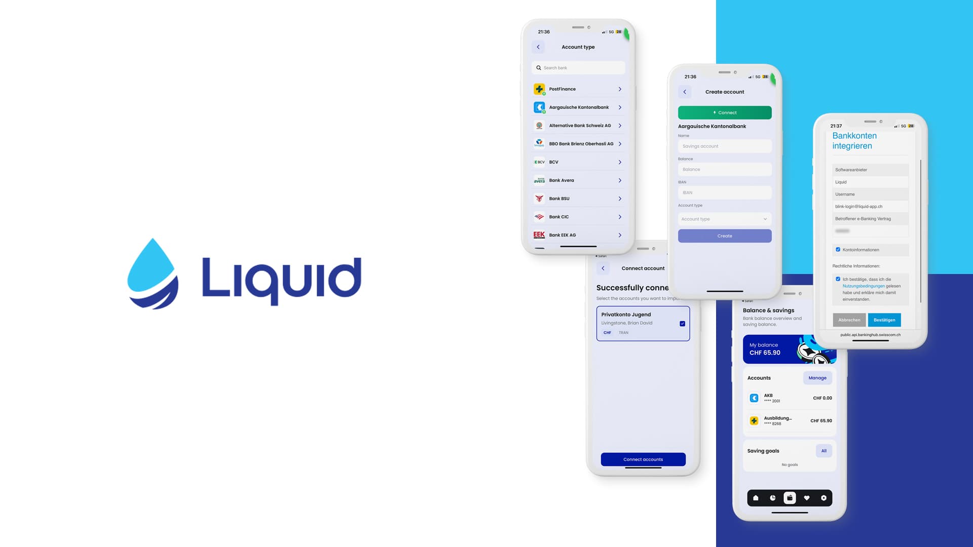 The goal of Liquid is to create a solution that makes financial management for young adults as simple, effortless, and accessible as possible ‒ an app that is fun, provides real added value, and sustainably promotes better financial habits.