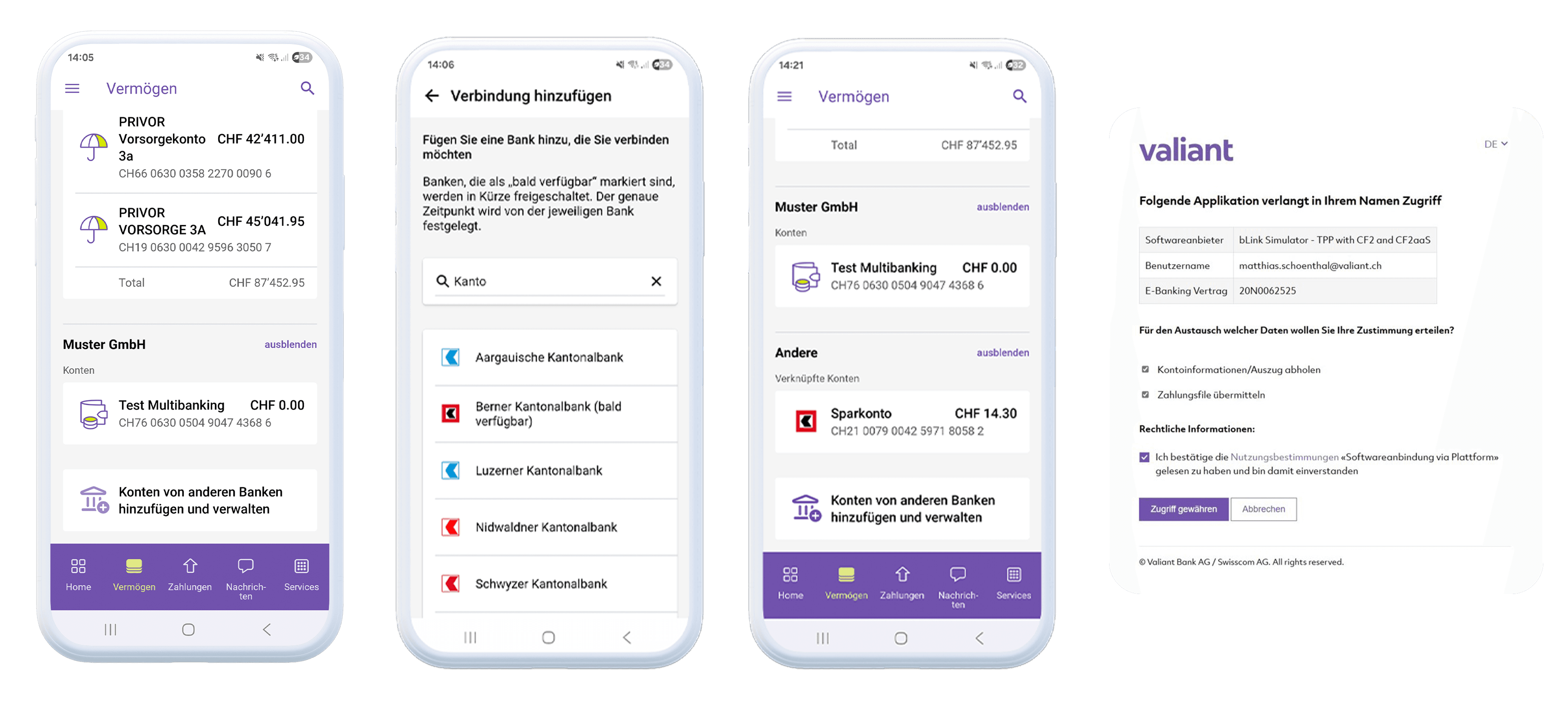 For Valiant, bLink is also the optimal foundation for enhancing its own channels with data from third-party solutions and delivering added value to end customers. For use cases such as multibanking, the standardized and simple activation process is a key success factor. Only when end customers are given easy and intuitive access to digital solutions will they be widely adopted. bLink is therefore a crucial success factor for Valiant in the area of open banking.